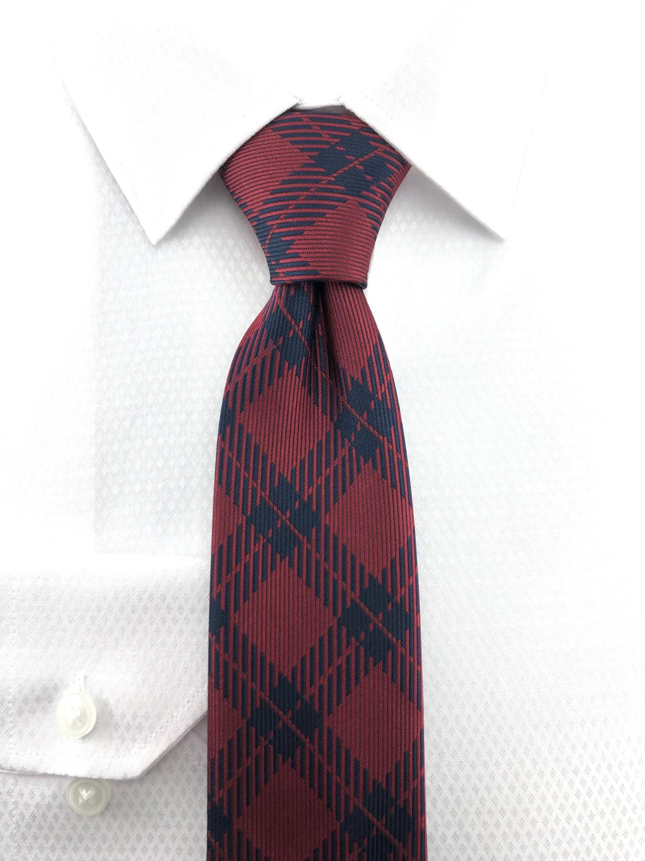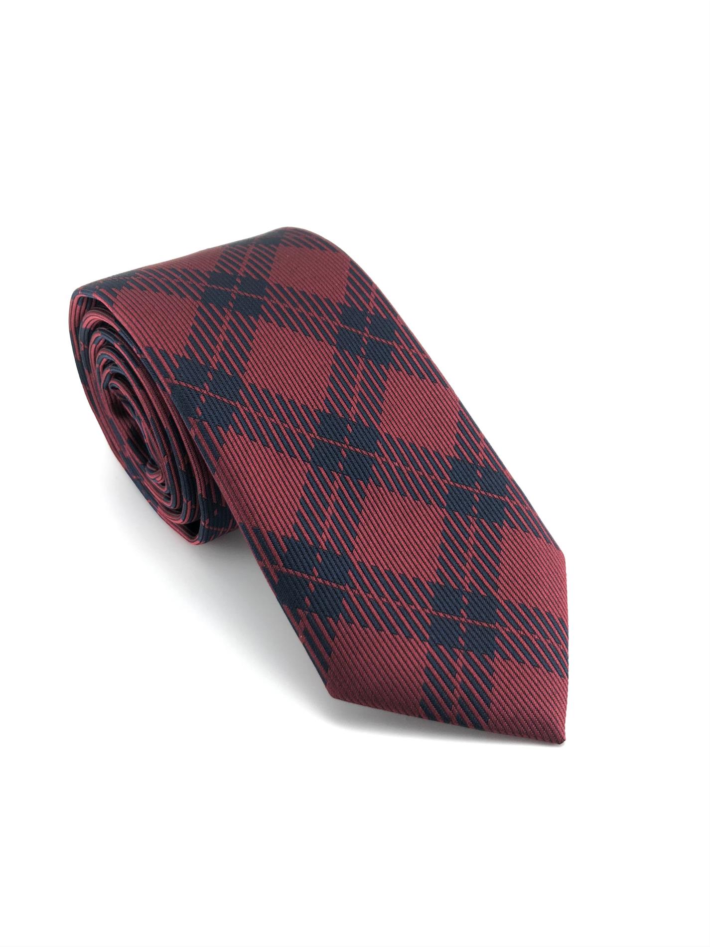 Bordo Lacivert Ekose Desen Kravat