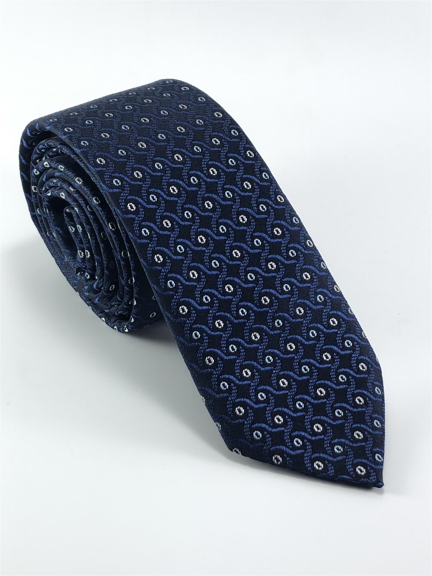 Lacivert Beyaz Desenli Slim Kravat