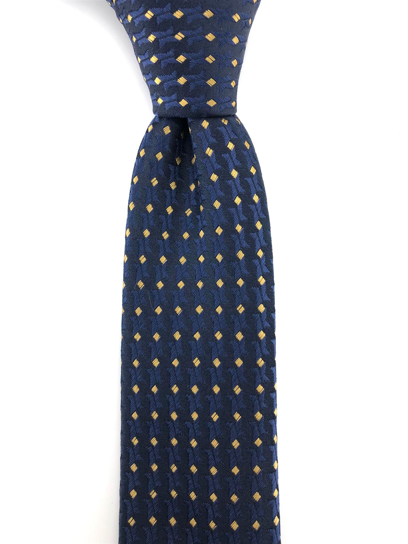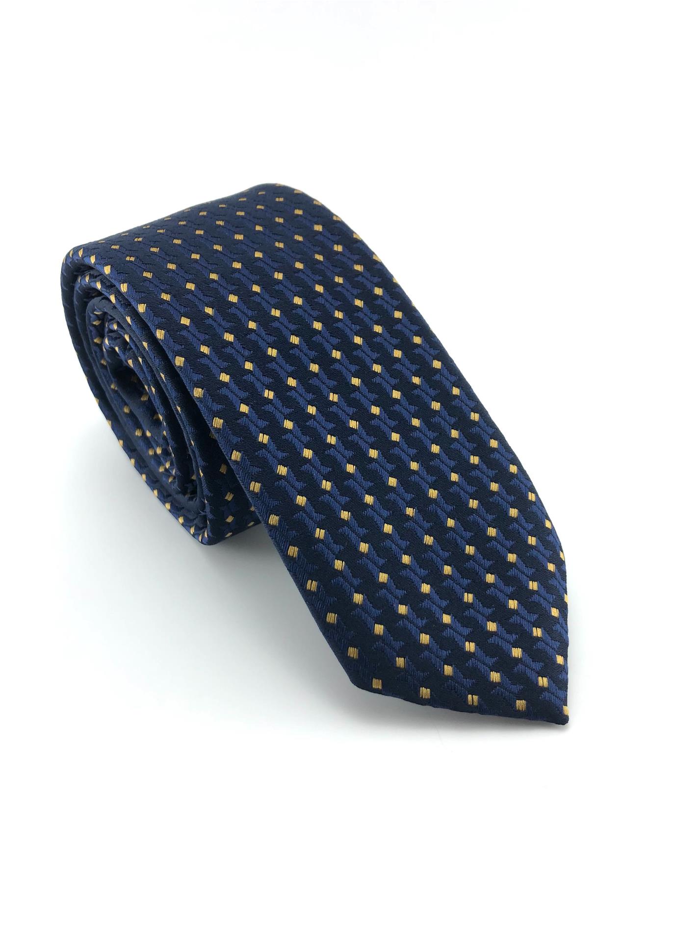 Lacivert Sarı Desenli Slim Kravat