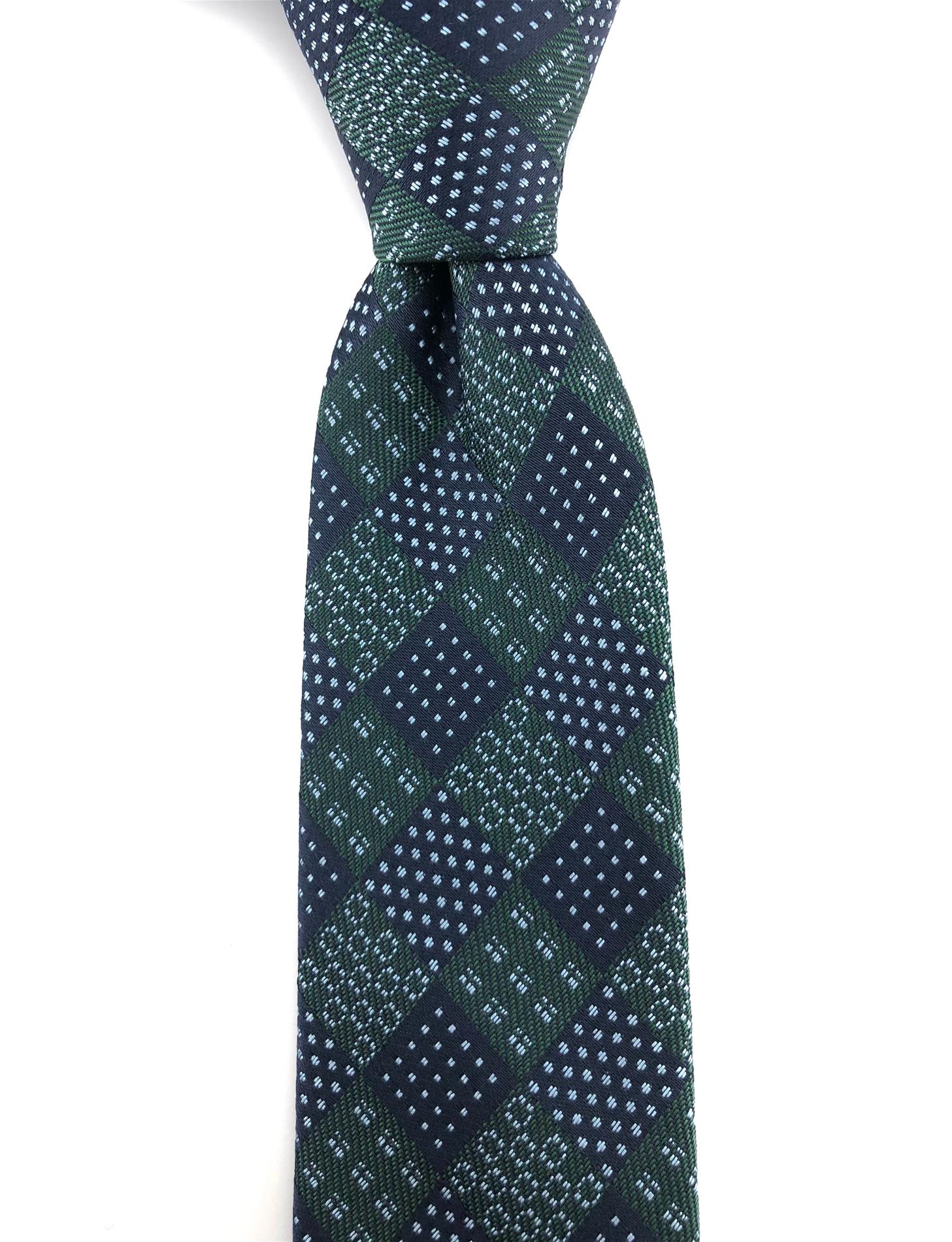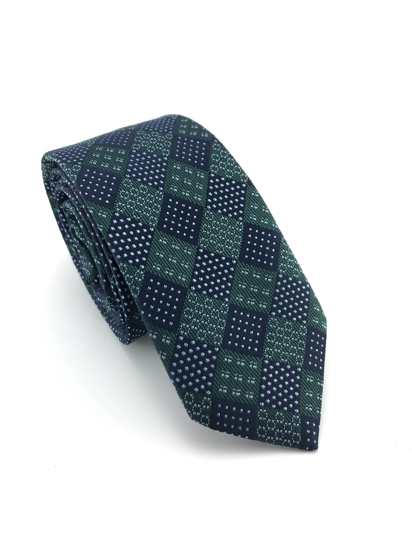 Lacivert Yeşil Kare Desenli Slim Kravat