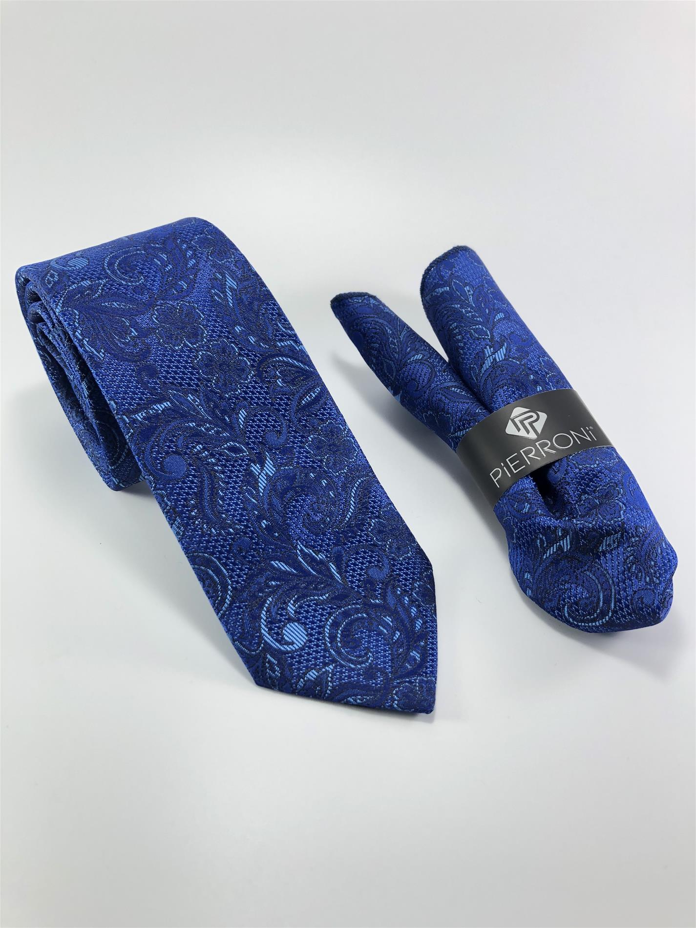 Mavi Şal Desen Mendilli Kravat