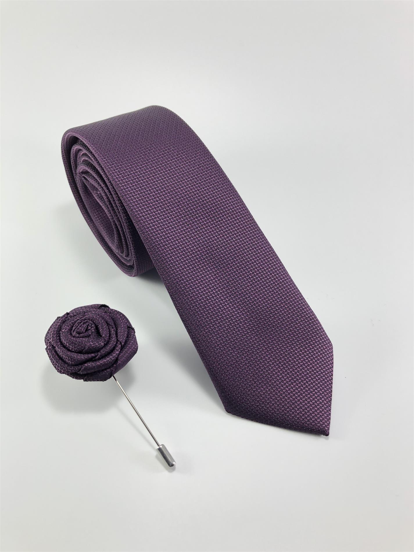 Mürdüm Düz Armür Desen Yaka İğneli SET Kravat