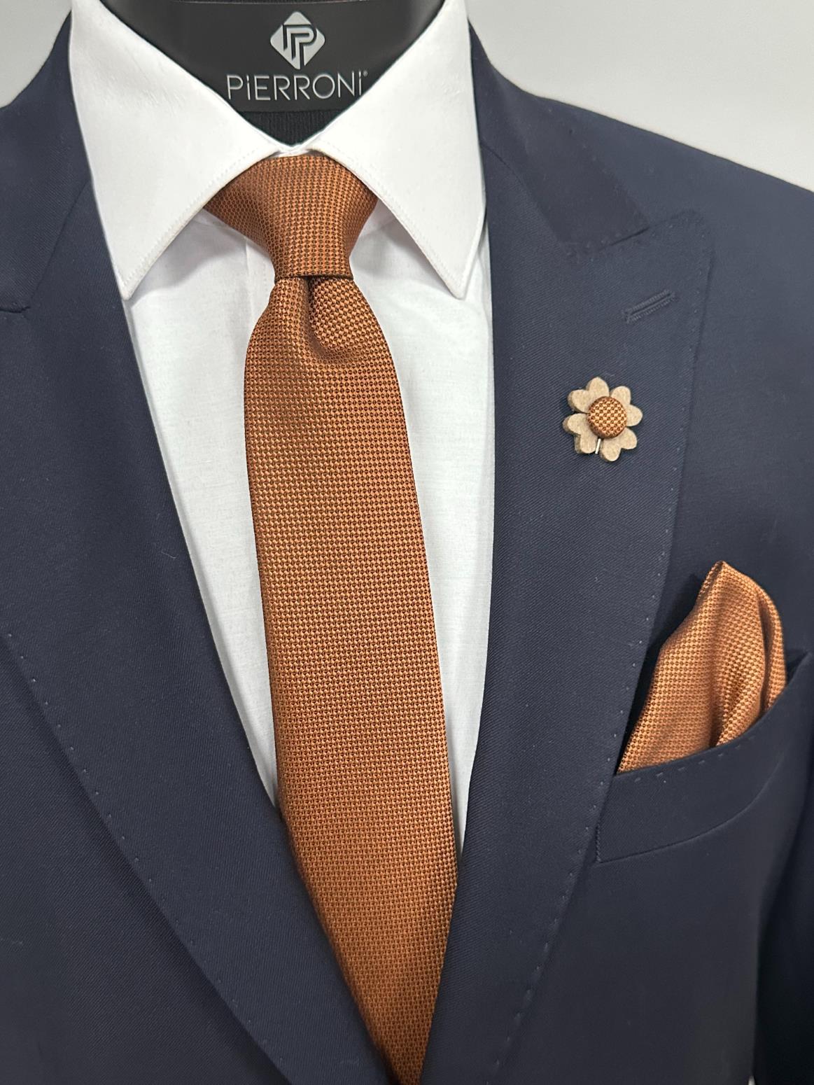 Taba Kravat Mendil Yaka Çiçeği Kombin Set